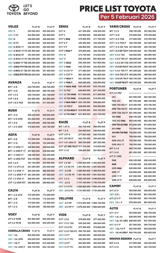 Harga Toyota Depok terbaru, Pricelist OTR Toyota 2026. Hubungi Sales kami untuk info simulasi kredit dan diskon Toyota terbaru